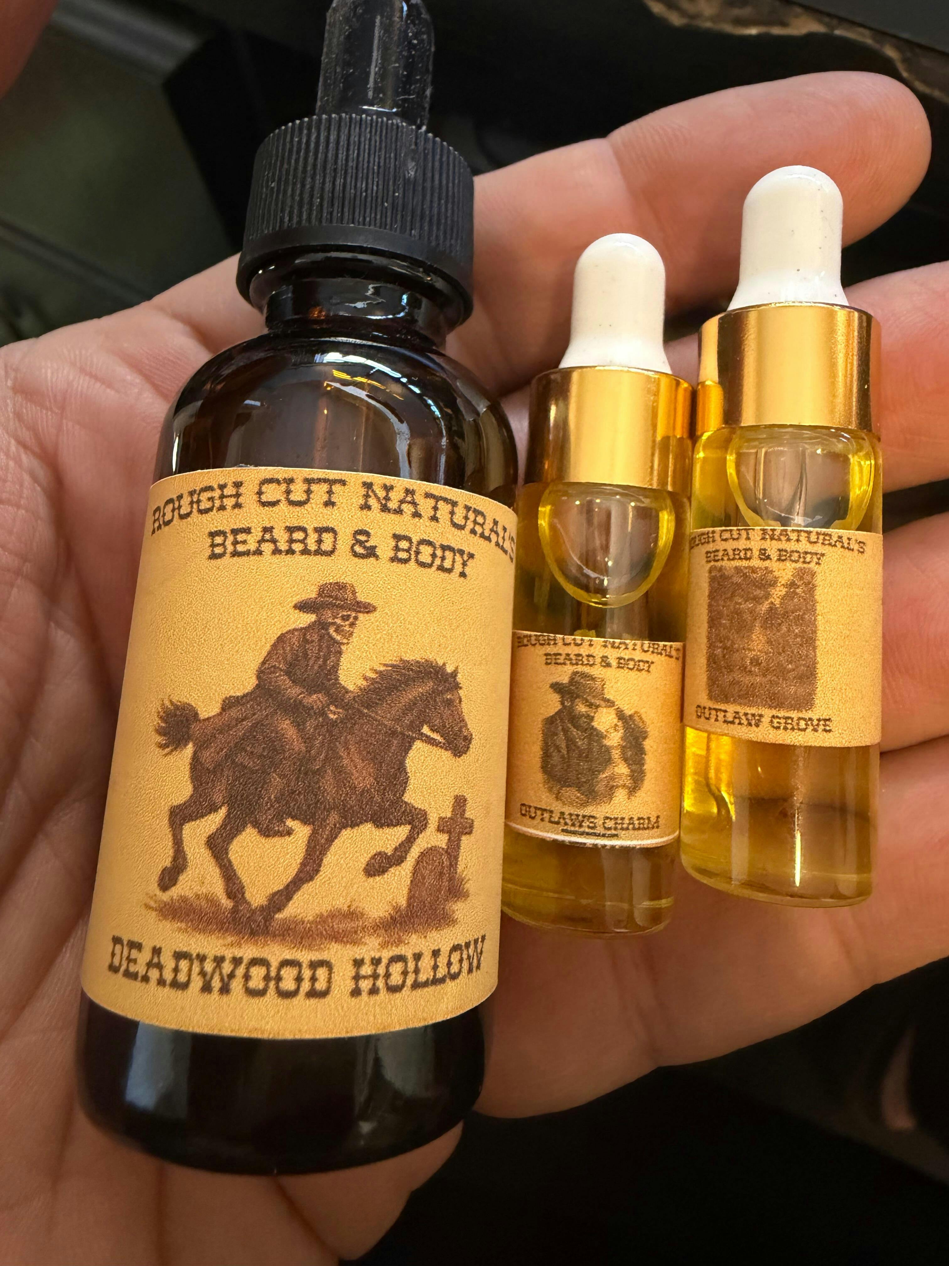 I picked up Deadwood Hollow beard oil, and boy, this one smells fantastic! The combination of Nutmeg, Black Pepper,Orange, & Fir Needles play well together, making a very balanced, great smelling scent. This also feels great in my beard. Not too heavy or oily, made my beard feel very soft. This one is a winner!